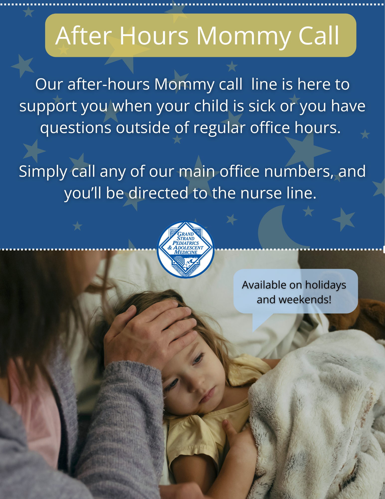 Patients are seen by appointment only. We appreciate that the Grand Strand is a very popular tourist location. We also understand the difficulty of having an ill child when you are away from home. That is why we welcome tourist to call for appointments if your child needs medical attention.
